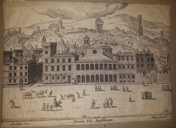 Acquaforte, 170 x 238 mm. Prima edizione. Stato I/II. Filigrana con monogramma di Hendrick Van Cleve: mano con quadrifoglio. In basso sotto l'immagine incisa: a sinistra "Henri. Cliven. inven", al centro il titolo, a destra "Philipp. Gall. excud.". Fa parte di "Ruinarium varii prospetto ruriumque aliquot delineationes" Hendrick o Hendrik van Cleve III (1525-1589) era un pittore e incisore fiammingo, figlio e allievo di Willem van Cleve il Vecchio e fratello maggiore di Marten van Cleve il Vecchio e di Willem Van Cleve il Giovane. Viene chiamato "il terzo" per differenziarlo da Hendrik van Cleve I (registrato come maestro della Corporazione di San Luca 1489/90) e Hendrick II (Gilda di San Luca, 1534). Hendrick III andò in Italia da giovane, e tornò nel suo paese natale, buon pittore di paesaggi. Le sue immagini si distinguono per una leggerezza insolita del tatto e un eccellente tono di colore. Gli sfondi delle opere storiche di suo fratello Marten e di Frans Floris sono spesso dipinti da questo artista e sono armonizzati con le figure con grande intelligenza. "Storia del figlio prodigo" nel Belvedere di Vienna è sua. Fu accolto nella Gilda di San Luca ad Anversa nel 1551. Hendrick van Cleve si è distinto come incisore. Molte delle sue incisioni si riferiscono a paesaggi e vedute vicino a Roma. Una serie di trentotto tavole di questo artista, dal titolo Ruinarum varii prospectus, ruriumque aliquot delineationes, pubblicato da Theodoor Galle. Morì ad Anversa tra il 1590 e il 1595. Hollstein, Dutch and Flemish etching engravings and woodcuts ca. 1540-1700, v. 4., p. 170