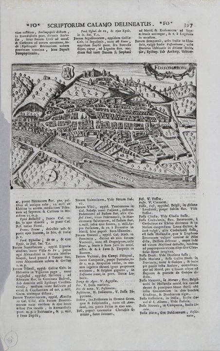 Veduta della città, edita per la prima volta nel 1599 nel "Theatrum Urbium Italicarum", serie di 59 tavole con vedute e piante accompagnate da descrizione latina, eseguite da più incisori, poi ristampata, accresciuta, anche con il titolo italiano Teatro delle città d’Italia, per i tipi di Domenico Amadio.Alla morte di Pietro , l’attività proseguì con suo figlio Francesco, anch’egli tipografo, incisore e editore. Il "Teatro delle città d’Italia" venne più volte ristampato e implementato da Francesco nel corso del secolosuccessivo. Questo esemplare è tratto dall'opera ' Universus terrarum orbis scriptorum calamo delineatus . qui de Europae, Asiae, Africae, & Americae regnis, provinciis, populis, civitatibus. pubblicata a Padova nel 1713, presso Matteo Cadorin, da Raffaello Savonarola, sotto lo pseudonimo di Lasor a Varea (o Varela). L'opera era una sorta di enciclopedia che conteneva notizie sulle varie località del mondo disposte in ordine alfabetico, arricchita da mappe e vedute di tutto il mondo che appartengono a celebri raccolte cartografiche del passato – Bertelli, Valegio, Camocio, Bonifacio, Nelli, Magini e altri – del quale probabilmente l’editore Cadorin era in possesso delle matrici originali. Incisione su rame, ampi margini, in ottimo stato di conservazione. This example is taken from the work ' Universus terrarum orbis scriptorum calamo delineatus . qui de Europae, Asiae, Africae, & Americae regnis, provinciis, populis, civitatibus. ' published in Padua in 1713, at Matteo Cadorin, by Raffaello Savonarola, under the pseudonym of Lasor a Varea (or Varela). The work was a kind of encyclopedia containing news about the various localities of the world arranged in alphabetical order, enriched with maps and views of the whole world belonging to famous cartographic collections of the past-Bertelli, Valegio, Camocio, Bonifacio, Nelli, Magini, and others-of which the publisher Cadorin probably possessed the original plates. Copper engraving, in excellent condition. Cfr.
