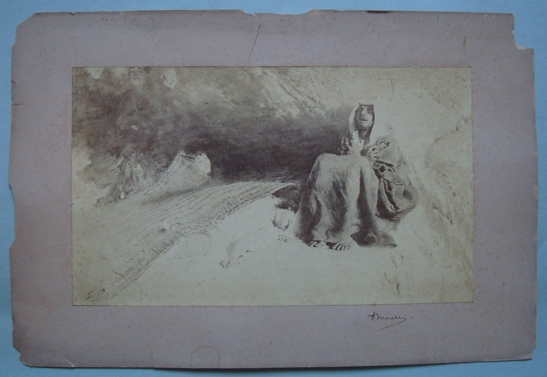 Morelli Domenico. Fotografia originale con firma autografa. S.l.n.d. Cm.22x39. Arabo assiso.