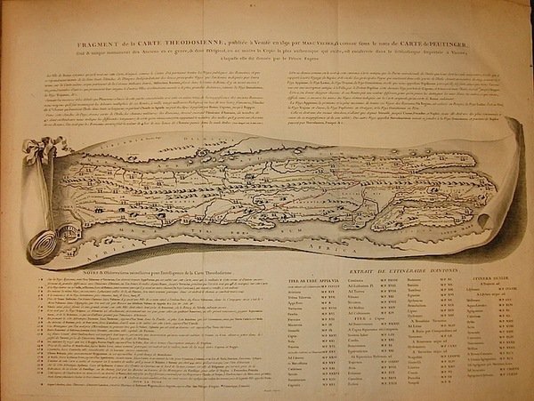 Fragment de la carte Theodosienne, publée a Venise en 1591 par Marc Velser & conue sous le nom de carte de Peutinger.
