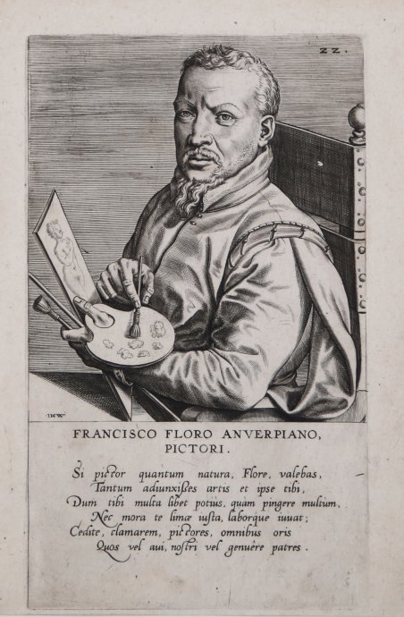 Bulino, 1572 circa, tratta da Pictorum Aliquot Celebrium Germaniae Inferioris Effigies. Primo stato. ' La prima edizione viene pubblicata dalla vedova di Hieronymus Cock ad Anversa nel 1572. Pictorum aliquot celebrium Germaniae inferioris effiges, una serie di 23 ritratti di artisti dei Paesi Bassi, è pubblicato nel 1575 con imprint “In de Vier Winden”, una delle principali stamperie di Amsterdam. Sebbene alcuni abbiano suggerito che la serie è stata concepita dall'umanista Dominicus Lampsonius, che ha composto versi per accompagnare i ritratti, è più probabile che l'autore sia stato Hieronymus Cock, il fondatore della tipografia con sede “In de Vier Winden”. La serie è apparsa in un momento in cui l'interesse per la vita degli artisti stava crescendo e di conseguenza ha attraversato diverse edizioni e interpretazioni di altri editori. Ottime condizioni. Engraving, 1572 circa, ' from Pictorum Aliquot Celebrium Germaniae Inferioris Effigies. First state. ' The first edition published by the widow of Hieronymus Cock in Antwerp in 1572. The Pictorum aliquot celebrium Germaniae inferioris effiges, a series of 23 portraits of artists from the Low Countries, published in 1575 by In de Vier Winden, a leading Amsterdam printing house. Although some have suggested that the series was conceived by the humanist Dominicus Lampsonius, who composed verses to accompany the portraits, the author is more likely to have been Hieronymus Cock, the founder of In de Vier Winden. The series appeared at a time when interest in the lives of artists was growing and consequently went through multiple editions and reinventions by other publishers. Very good condition. Cfr.