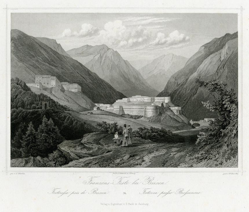 Incisione su acciaio di dimensioni 140x207 mm. Condizioni : USATO - Stato : Buono, ordinari segni d'uso e del tempo. Altre note : Veduta di Fortezza, a nord di Bressanone. Il forte da cui deriva il nome del luogo è un edificio militare grandioso voluto dall'imperatore Francesco I nel 1832. Situato in un punto in cui la valle dell'Isarco si chiude e ricoperto di lastre di granito, dava certo un'impressione di forza e imponenza, ma non ebbe mai in realtà il suo battesimo di fuoco. Il forte è tuttora ben conservato e visitabile. L'autore della veduta è Friedrich Würthle (1820-1902), allievo di Karl Frommel e attivo a Salisburgo a partire dal 1860.