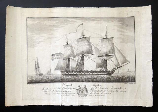Giacomo Aliprandi, Livorno, 1790 circa. Acquaforte, b/n cm 28,5 x 38,3 (alla battuta) più margini, al margine inferiore "Dedicata a Sua Eccell.za Il Sig.re V. Balio I. D. Ignazio Argote G. Croce.", in bs. a sn. "Allezard deli.", in bs. a ds. "Fambrini inci.". Ferdinando Fambrini (1764 - 1780) attivo a Lucca e celebre per aver illustrato la prima edizione italiana dell' "Encyclopédie" di Denis Diderot e Jean Baptiste le Rond d'Alembert (curata da Ottaviano Diodati per la Stamperia Lucchese tra il 1758 e il 1776). Una leggera patina della cartae duepiccoli strappetti riparati al margine inferiore, lievi ondulazioni, ben impressa e in margini. .