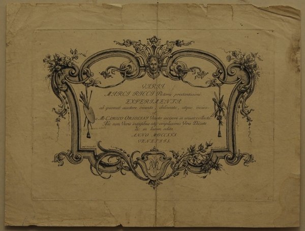 Frontespizio del volume "Varia Marci Ricci Pictoris prestantissimi Experimenta."