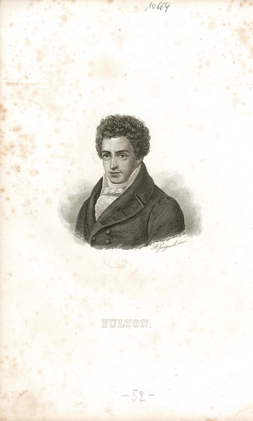 Stampa antica ed originale del ritratto di Fulton Roberto scienziato nato nel 1765. Autore: Spagnoli inc. Anno: 1835. Tecnica: incisione in rame. Dimensioni: 240x150 mm il foglio. In allegato 5 pagine descrittive (con leggero foxing) della vita dello scienziato