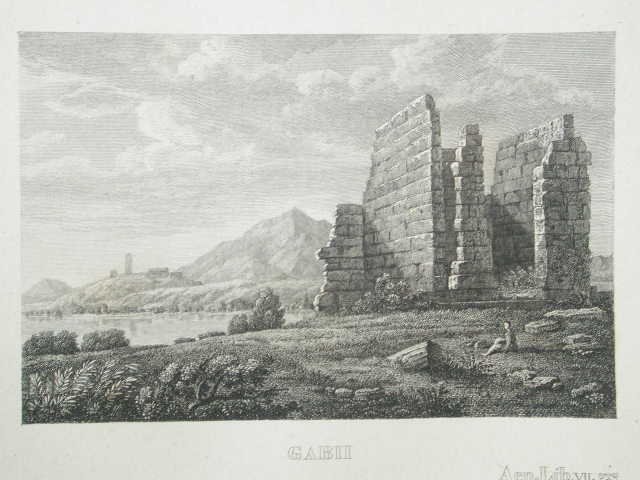Stampa antica ed originale con veduta delle rovine di Gabi