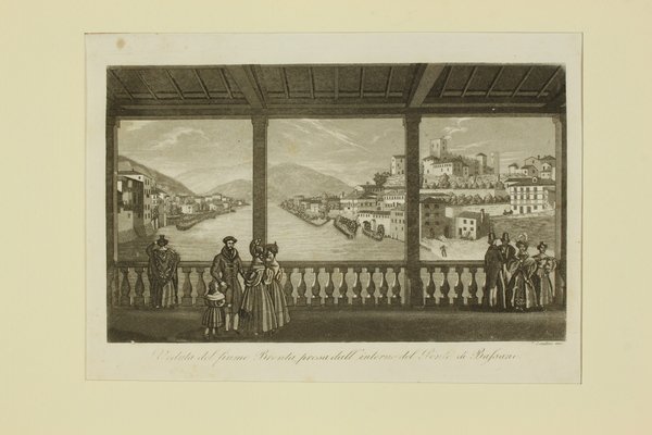GANDINI FRANCESCO. Veduta del fiume Brenta presa dall'interno del Ponte di Bassano.