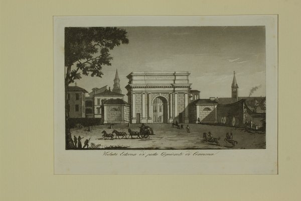 GANDINI FRANCESCO. Veduta esterna di porta Ognisanti di Cremona.