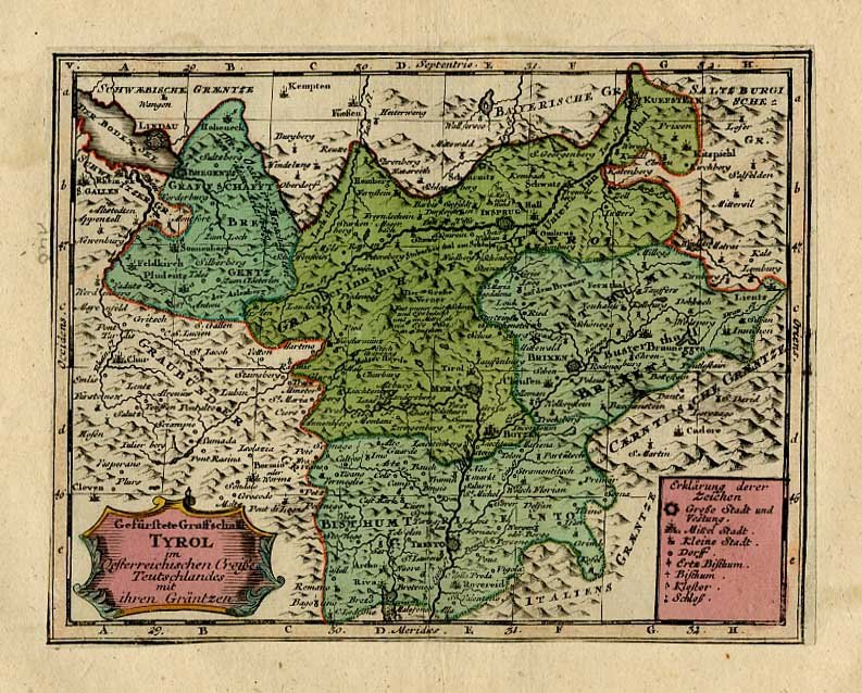 Gefürstete Graffschafft Tyrol im Oesterreichischen Creisse Teutschlandes mit ihren Gräntzen.