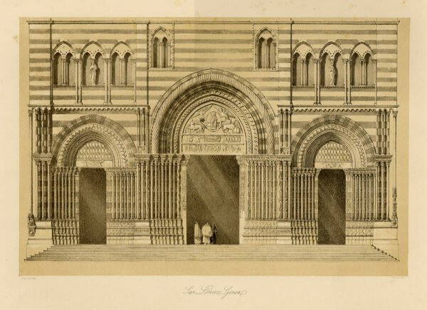 Aliusetti del.-G. Moore lith. Bella litografia della facciata della basilica. f. 40x26. Knight, London, 1842-44.