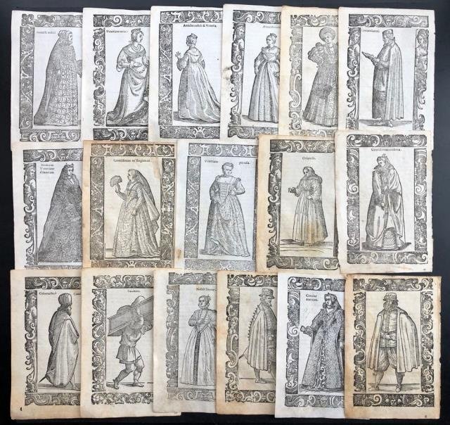 Tratta dalla prima, seconda o terza edizione de “De gli Habiti Antichi, et Moderni di Diverse Parti del Mondo overo Raccolta di Figure delineate dal Gran Titiano e da Cesare Vecellio Suo Fratello, diligentemente intagliate, conforme alle Nationi del Mondo. Libro utilissimo a Pittori, Dissegnatori, Scultori, Architetti ed ad ogni curioso, e peregrino ingegno” e, nello specifico, dal “Libro Primo de gli Habiti d'Italia”. Incisione in rame all'acquaforte, b/n, cm 11,5 x 17 circa (il foglio), pagina 103 del volume. Ben impressa, buono stato di conservazione. Cesare Vecellio (Pieve di Cadore, 1521 – Venezia, 1601), imparentato con Tiziano, pittore, incisore e miniaturista di buona fama, artista eclettico con un forte interesse per la ricerca dei costumi. Questa sua opera, in due libri, pubblicata in prima edizione nel 1590 ebbe due ristampe, una nel 1598, vivente l'autore, con traduzione latina a fronte e aggiunte, e una nel 1664, unica seicentesca. Si trattava di un genere culturale che godeva di grande popolarità e che conobbe ampia produzione in Europa tra la seconda metà del XVI i primi decenni del XVII secolo, i libri di costume. Essa rappresentò un capolavoro sia per la storia del costume della Repubblica di Venezia, sia per la storia del libro dal punto di vista tipografico e xilografico, giacché, profusamente illustrata da circa 415 incisioni di costumi, ciascuna con propria didascalia, suscitò grande interesse, sia storico che grafico, perché Vecellio realizza i disegni degli abiti commentandoli con una descrizione che non si ferma al solo vestiario ma che diviene una riflessione sulla società e sulla vita economica, religiosa e politica. La seconda e la terza edizione conterranno poi illustrazioni di fogge di vestiario di ogni parte del mondo allora noto, da papi e principi, a soldati e contadini, tant'è che l'opera può essere annoverata come il primo trattato di storia della moda.