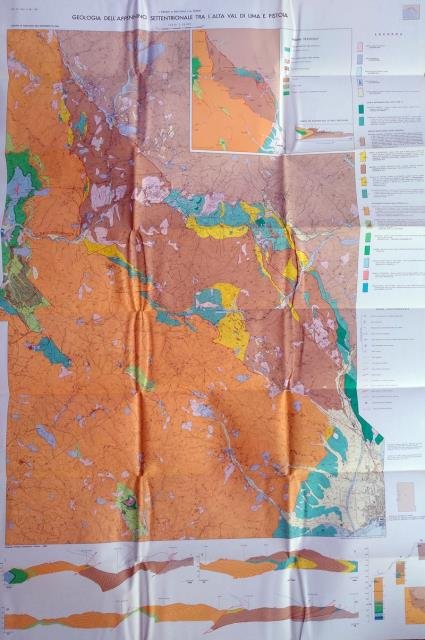Allegata al Bollettino Società Geologica Italiana, 100, 1981. Grande carta in colore, più volte ripiegata, cm 75 x 110, accompagnata da schema tettonico, ricca legenda e segni convenzionali, fascetta in carta con provenienza, Autori e titolo. Come nuova.