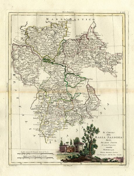 Carta geografica inci. in rame da G. Pitteri - dis.da G. Zuliani; acquarellatura coeva, con vignetta allegorica nel titolo, f. del folio cm. 48x38,5 ZATTA, Antonio. - Atlante Novissimo.Venezia