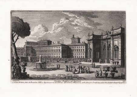 Veduta tratta dalla monumentale opera ' Delle magnificenze di Roma antica e moderna.Pubblicata in 10 volumi dal 1747 al 1761, l’opera presenta 238 incisioni in rame, ciascuna incisione con testo narrativo che fornisce informazioni storiche e documentarie. ' Conosciuto dai più semplicemente come il "maestro" di Giovanni Battista Piranesi, Giuseppe Vasi rivela in quest'opera monumentale la pienezza della sua creatività grafica. I 10 libri che la compongono hanno ognuno un frontespizio con titolo e data diversi: ' Libro primo che contiene le porte e mura; Libro secondo, che contiene le piazze principali di Roma con obelischi, colonne, ed altri ornamenti; Libro terzo, che contiene le basiliche e chiese antiche di Roma; Libro quarto che contiene i palazzi e le vie più celebri; Libro quinto che contiene i ponti e gli edifizj sul Libro sesto che contiene la chiese parrocchiali; Libro settimo che contiene i conventi e case dei chierici regolari; Libro ottavo che contiene i monasteri e conservatorj di donne; Libro nono che contiene i collegj, spedali, e luoghi pii; decimo che contiene le ville e giardini più rimarchevoli. Le ' Magnificenze ' forniscono un panorama completo e al tempo stesso anticonvenzionale dell'Urbe: così, insieme alle consuete, celeberrime inquadrature desunte dalla migliore tradizione vedutistica, si trova anche una Roma insolita, quella che, talvolta, non esiste più. A quest'opera, di centrale importanza nell'editoria romana di metà Settecento, l'Autore aveva lavorato per quasi un ventennio realizzando una monumentale guida dell'Urbe dove accanto alle consuete e celeberrime inquadrature tratte dalla migliore tradizione vedutistica, immortala anche scorci insoliti che sono poi scomparsi con il cambiare della città. Il testo che accompagna le vedute nel primo volume è opera di Giuseppe Bianchini, nel secondo di Orazio Orlandi e nei restanti del Vasi stesso. A partire dall'edizione del 1786, l'opera del Vasi, fu aggiornata dal figlio Mariano, che la pubblicò col titolo ' Raccolta delle più belle vedute antiche, e moderne di Roma, mostrando solo il nome del padre come autore. Questa nuova edizione presentava molte tavole della prima edizione, ed alcune nuove. Anche la pubblicazione di Mariano Vasi fu stampata più volte, sempre con l’aggiunta di nuove tavole. Esemplare tratto dall'edizione del 1786. Acquaforte, stampata su carta vergata coeva, completa dei margini, in ottimo stato di conservazione. ' View taken from the monumental work ' Delle magnificenze di Roma antica e moderna. Published in 10 volumes from 1747 to 1761, the work features 238 copper engravings, each engraving with a narrative text that provides historical and documentary information. Known by most simply as the "master" of Giovanni Battista Piranesi, Giuseppe Vasi reveals in this monumental work the fullness of his graphic creativity. The 10 books that compose it each have a title page with a different title and date: ' Libro primo che contiene le porte e mura; Libro secondo, che contiene le piazze principali di Roma con obelischi, colonne, ed altri ornamenti; Libro terzo, che contiene le basiliche e chiese antiche di Roma; Libro quarto che contiene i palazzi e le vie più celebri; Libro quinto che contiene i ponti e gli edifizj sul Libro sesto che contiene la chiese parrocchiali; Libro settimo che contiene i conventi e case dei chierici regolari; Libro ottavo che contiene i monasteri e conservatorj di donne; Libro nono che contiene i collegj, spedali, e luoghi pii; decimo che contiene le ville e giardini più rimarchevoli. The ' Magnificences ' provide a complete and at the same time unconventional panorama of the City: thus, together with the usual, celebrated shots taken from the best tradition of ' vedutistica, one also finds an unusual Rome, one that, at times, no longer exists. The author had worked on this work, of central importance in Roman publishing in the middle of the eighteenth century, for almost twenty years, producing a monumental guide to the “Urbe” where, alongside the usual and famous shots taken from the best tradition of ' vedutistica, he also immortalized unusual views that have since disappeared with the change of the city. The text that accompanies the views in the first volume is by Giuseppe Bianchini, in the second by Orazio Orlandi and in the remaining ones by Vasi himself. Starting from the edition of 1786, the work of Vasi, was updated by his son Mariano, who published it under the title ' Raccolta delle più belle vedute antiche, e moderne di Roma, showing only the name of his father as author. This new edition presented many plates of the first edition, and some new ones. The publication of Mariano Vasi was also printed several times, always with the addition of new plates. ' View taken from 1786 edition of the Vasi’s ' Delle Magnificenze di Roma Antica e Moderna. Etching, printed on contemporary laid paper, in very good condition. Cfr. Scalabroni, 295