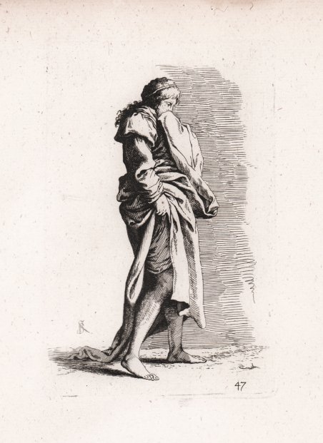 Acquaforte, circa 1675/80, priva di firma. Copia in controparte della stampa di Salvator Rosa, della serie dei capricci con soldati, detta le ' Figurine. ' La serie delle cosiddette ' Figurine ' di Salvator Rosa ebbe un grande successo, documentato dal gran numero di imitazioni che ebbe in tutta Europa. La prima edizione di questa raccolta fu realizzata dal Rosa in 62 tavole all’acquaforte incise tra il 1656 e il 1657. Almeno otto diverse copie della stessa edizione furono eseguite tra la fine del XVII e la prima metà del XVIII secolo. ' ' La serie venne inserita nella celebre ' Academia Todesca della Architectura, Scultura & Pittura: oder Teutsche Academie der Edlen Bau, Bild-und Mahlerey-Künste, raccolta monumentale, riccamente illustrata da centinaia di incisioni raffiguranti antichità, architettura e mitologia classica, edita a Norimberga e Francoforte tra il 1675 ed il 1680. ' Per le incisioni, il Sandrart si avvalse dei suoi collaboratori Karl Gustav von Amling (1650-1703); Philip Kilian (1628-1693); Richard Collin (1627-97); Georg Andreas Wolfgang (1631-1716); Johann Georg Waldreich (d.1680); Melchior Küsel (1626-1683); Franck, Johann (fl.1659-1690); George Christoph Eimmart (1638-1705); Susanna Maria von Sandrart (1658-1716); Bartholomäus Kilian (1630-1696). Bellissima prova, impressa su carta vergata coeva, con margini, in perfetto stato di conservazione. ' Bibliografia Cfr. Bartsch, Le ' Peintre graveur ' (XX.283.51); Wallace p. 330, 133; National Gallery (Washington), ' Mark J. Millard, III (1998), no. 111; F.W. H. Hollstein, ' German engravings . ca. 1400-1700 ' (1954-), 38-41; Anna Schreurs, ' Unter Minerva schutz: bildung durch kunst in Joachim von Sandrarts 'Teutscher Academie' ' (2012). Etching, ca. 1675/80, unsigned. Copy of Salvator Rosa's print from the Capricci with soldiers series, called the ' Figurine. The series of the so-called ' Figurine ' of Salvator Rosa had a great success, documented by the large number of imitations that had throughout Europe. The first edition of this collection was made by Rosa in 62 etching plates engraved between 1656 and 1657. At least eight different copies of the same edition were made between the end of the 17th and the first half of the 18th century. This set is part of the monumental ' Academia Todesca della Architectura, Scultura & Pittura: oder Teutsche Academie der Edlen Bau, Bild-und Mahlerey-Künste ' (Deutsche Academy of Architecture - Sculpture – Painting). ' The first edition, in German, was published by Joachim von Sandrart in Nuremberg, in three volumes respectively in 1675, 1679 and 1680. For the plates Sandrart used his students as and many others artist as ' Karl Gustav von Amling (1650-1703); Philip Kilian (1628-1693); Richard Collin (1627-97); Georg Andreas Wolfgang (1631-1716); Johann Georg Waldreich (d.1680); Melchior Küsel (1626-1683); Franck, Johann (fl.1659-1690); George Christoph Eimmart (1638-1705); Susanna Maria von Sandrart (1658-1716); Bartholomäus Kilian (1630-1696). The work is full of illustrations of ancient and modern Roman buildings, sculpture, the theory of painting, biographies of artists, including German and contemporary (ie seventeenth-century) artists, and antiquities. Joachim von Sandrart was a painter of some note but it is for his ' Teutsche Academie ' that he is chiefly remembered. His compendious treatise includes sections on ancient sculpture and architecture, perspective, the theory of painting, artists’ biographies, a translation of Ovid’s Metamorphoses and so on. The second part of Book I purports to give a history of art from its earliest origins, and opens with an engraving of two scenes of legendary accounts of the discovery of drawing. ' The work is dedicated to the world-renowned German nation and to champions and lovers of art ('Der Welt-berühmten Teutschen Nation . Kunst-Helden und Kunstliebenden'). Beautiful proof, printed on contemporary laid paper, with margins, in perfect condition. Bibliografia Cfr. Bartsch, Le ' Peintre graveur ' (XX.283.51); Wallace p. 330, 133; National Gallery (Washington), ' Mark J. Millard, III (1998), no. 111; F.W. H. Hollstein, ' German engravings . ca. 1400-1700 ' (1954-), 38-41; Anna Schreurs, ' Unter Minerva schutz: bildung durch kunst in Joachim von Sandrarts 'Teutscher Academie' ' (2012). Cfr.