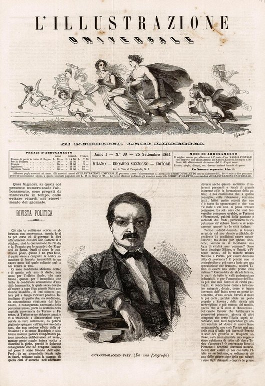 Stampa, antica ed originale, raffigurante il ritratto Giovanni Giacomo Fazy. Inserita in una rara pubblicazione, edita dall'Editore Edoardo Sonzogno, spesso non inserita nelle bibliografie di riferimento. Testo al retro