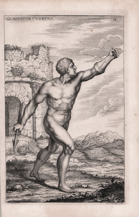 Opera tratta dalla celebre ' Academia Todesca della Architectura, Scultura & Pittura: oder Teutsche Academie der Edlen Bau, Bild-und Mahlerey-Künste, raccolta monumentale, riccamente illustrata da centinaia di incisioni raffiguranti antichità, architettura e mitologia classica, edita a Norimberga e Francoforte tra il 1675 ed il 1680. ' Per le incisioni, il Sandrart si avvalse dei suoi collaboratori Karl Gustav von Amling (1650-1703); Philip Kilian (1628-1693); Richard Collin (1627-97); Georg Andreas Wolfgang (1631-1716); Johann Georg Waldreich (d.1680); Melchior Küsel (1626-1683); Franck, Johann (fl.1659-1690); George Christoph Eimmart (1638-1705); Susanna Maria von Sandrart (1658-1716); Bartholomäus Kilian (1630-1696). L'opera è piena di illustrazioni di edifici romani antichi e moderni, scultura, teoria della pittura, biografie di artisti, tra cui artisti tedeschi e contemporanei (cioè del XVII secolo), e antichità. Joachim von Sandrart fu un pittore di una certa importanza, ma è per la sua Teutsche Academie che è principalmente ricordato. Il suo compendioso trattato include sezioni sulla scultura antica e l'architettura, la prospettiva, la teoria della pittura, biografie di artisti, una traduzione delle Metamorfosi di Ovidio e così via. La seconda parte del Libro I pretende di dare una storia dell'arte dalle sue prime origini, e si apre con un'incisione di due scene di racconti leggendari della scoperta del disegno. L'opera è dedicata alla nazione tedesca di fama mondiale e ai campioni e amanti dell'arte ('Der Welt-berühmten Teutschen Nation . Kunst-Helden und Kunstliebenden'). Acquaforte, con margini, ottimo stato di conservazione. Bibliografia National Gallery (Washington), ' Mark J. Millard, III (1998), no. 111; F.W. H. Hollstein, ' German engravings . ca. 1400-1700 ' (1954-), 38-41; Anna Schreurs, ' Unter Minerva schutz: bildung durch kunst in Joachim von Sandrarts 'Teutscher Academie' ' (2012). Plate taken fom the monumental ' Academia Todesca della Architectura, Scultura & Pittura: oder Teutsche Academie der Edlen Bau, Bild-und Mahlerey-Künste ' (Deutsche Academy of Architecture - Sculpture – Painting). ' The first edition, in German, was published by Joachim von Sandrart in Nuremberg, in three volumes respectively in 1675, 1679 and 1680. For the plates Sandrart used his students as and many others artist as Karl Gustav von Amling (1650-1703); Philip Kilian (1628-1693); Richard Collin (1627-97); Georg Andreas Wolfgang (1631-1716); Johann Georg Waldreich (d.1680); Melchior Küsel (1626-1683); Franck, Johann (fl.1659-1690); George Christoph Eimmart (1638-1705); Susanna Maria von Sandrart (1658-1716); Bartholomäus Kilian (1630-1696). The work is full of illustrations of ancient and modern Roman buildings, sculpture, the theory of painting, biographies of artists, including German and contemporary (ie seventeenth-century) artists, and antiquities. Joachim von Sandrart was a painter of some note but it is for his Teutsche Academie that he is chiefly remembered. His compendious treatise includes sections on ancient sculpture and architecture, perspective, the theory of painting, artists’ biographies, a translation of Ovid’s Metamorphoses and so on. The second part of Book I purports to give a history of art from its earliest origins, and opens with an engraving of two scenes of legendary accounts of the discovery of drawing. ' The frontispiece to Volume I is signed as drawn by J. de Sandrart and engraved by C.G. Amling; that of Volume II is signed as drawn by Sandrart and engraved by R. Collin. The portrait in Volume I is signed as painted by J.U. Mair and engraved by P. Kilian; that in Volume II is signed as engraved by R. Collin. Many plates are signed as drawn by Sandrart and engraved by R. Collin or other engravers (J. Franck, G.A. Wolfgang, J.G. Waldreich, I.I. Thourneyser, Melchior Küsell, G. C. Eimmart, B. Kilian, Jacob Sandrart, Joh. Meyer, Susanna von Sandrart, J.A. Boener, C. Meyer). Many plates are unsigned. The work is dedicated to the world-renowned German nation and to champions and lovers of art ('Der Welt-berühmten Teutschen Nation . Kunst-Helden und Kunstliebenden'). Etching with margins, very good condition. References National Gallery (Washington), ' Mark J. Millard, III (1998), no. 111; F.W. H. Hollstein, ' German engravings . ca. 1400-1700 ' (1954-), 38-41; Anna Schreurs, ' Unter Minerva schutz: bildung durch kunst in Joachim von Sandrarts 'Teutscher Academie' ' (2012). Cfr.