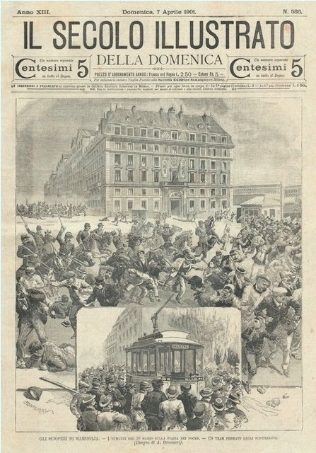 Gli scioperi di Marsiglia - I tumulti del 20 marzo sulla piazza dei docks - Un tram fermato dagli scioperanti