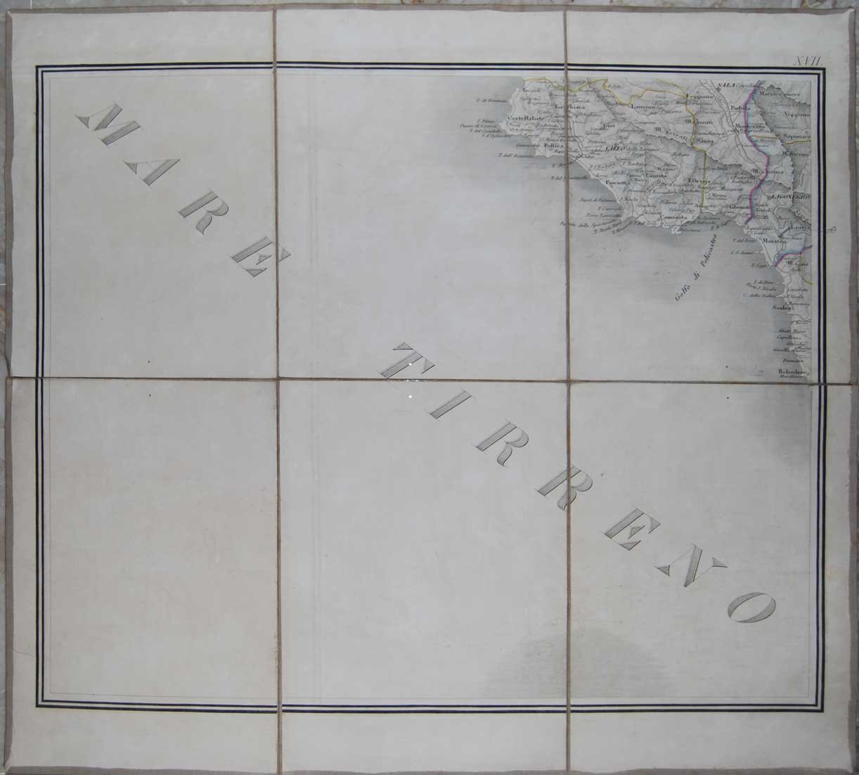 Cm. 52x48, carta geografica del golfo di Policastro, telata, divisa in 6 riquadri. In buono stato (good copy).