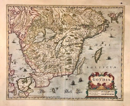 Carta geografica originale (cm. 49x39,5 più ampi margini bianchi) tratta dall’edizione in lingua latina dell’ ‘Atlas novus, sive descriptio geographica orbis terrarum’ pubblicato da Johannes Janssonius ed Henricus Hondius. Splendida coloritura d’epoca all’acquarello. Un forellino nel margine superiore bianco, peraltro esemplare in ottimo stato di conservazione. Rara.