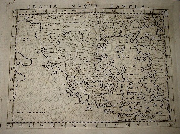 Incisione originale su rame (cm. 26x19 più margini bianchi) tratta da ‘La Geografia di Claudio Tolomeo’. Ottimo esemplare.