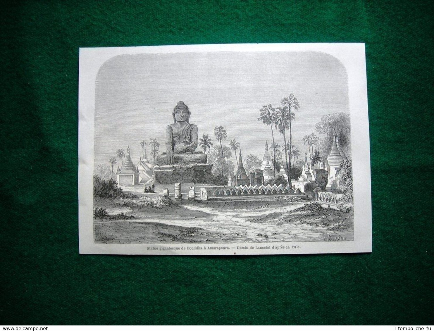 Gravure année 1860 statue gigantesque de Bouddha à Amarapoura, Birmanie