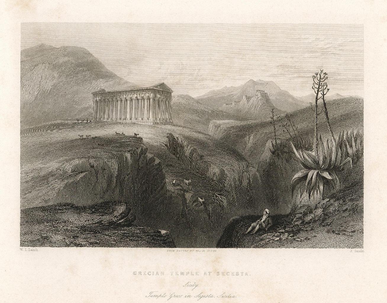 Stampa, antica ed originale, con raffigurato il tempio di Segesta. Autore: Leitch W. L. dis. Luogo: Segesta - Sicilia. Anno: 1851. Tecnica: incisione in acciaio. Dimensioni: 122x188. Opera inserita in alcune edizioni tra cui " Les Iles e les Bords de la Mediterranée comprenant la Sicile ." di M. Clément Pellé edita a Londra e Parigi da Fisher, Son & C. nel 1841 - "Il Mediterraneo illustrato le sue isole e le sue spiagge", edita a Firenze nel 1851 presso Spirito Batelli
