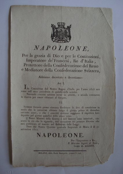 Grida napoleonica Decreto per arrualamento uomini per l'esercito 1912 (Napoleone)