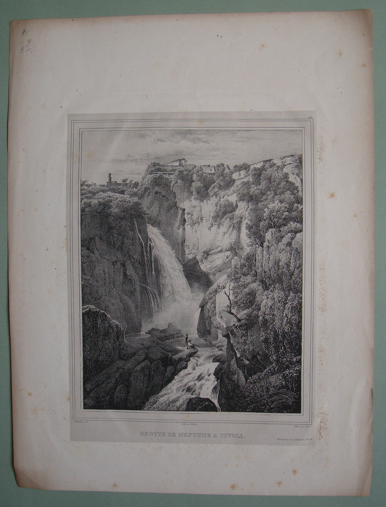 MICHALLON. Grotte de Neptune a Tivoli. 1840 ca. Cm.33x24. Litografia sur chine.