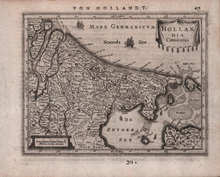 Mappa in miniatura tratta dall’Atlas minor, Das ist: Eine kurtze, jedoch gründliche Beschreibung der gantzen Weldt. ' Incisa da Abraham Goos o Pieter van den Keere, venne pubblicata per la prima volta da Johannes Janssonius nel 1628. L'Atlas Minor ' di Gerard Mercator fu concepito da Jodocus Hondius nel 1607 come edizione ridotta del popolare ' Atlas ' di Mercator in folio. L'Atlas Minor ' doveva essere più grande di un atlante tascabile, ma più piccolo di un atlante in folio, e aveva un prezzo adeguato a raggiungere una diversa clientela. Ci furono tre diverse edizioni dell'Atlas Minor ' pubblicate da autori diversi, ognuna con una nuova serie di mappe incise in rame. Jodocus Hondius pubblicò la prima edizione tra il 1607 e il 1621, e successivamente vendette le tavole in rame ad editori inglesi; tra il 1635-39 fu pubblicata un'edizione inglese dell’opera utilizzando molte delle tavole originali. Johannes Janssonius volle competere anche nel mercato dei “piccoli” atlanti e fece incidere nuove lastre di rame da Pieter van den Keere e Abraham Goos per la propria edizione dell’Atlas Minor, pubblicata in più lingue tra il 1628 e il 1651 La terza e ultima versione fu pubblicata da Jan Evertsz. Cloppenburch (o Cloppenburg) tra il 1630 e il 1734, con nuove mappe incise principalmente sempre da Pieter van den Keere. "Shortly after the publication of the big folio-atlases the need was apparantly felt for a smaller-sized atlas, one that would be handier, and, above all, cheaper, so that a larger public might have access to the use of maps. The publication of the ' Atlas Minor ' appeared to be a great success for Hondius; the first Latin edition was in great demand. The copperplates of the first atlases minor were most almost certainly engraved by Jodocus Hondius himself. After 1621, the copperplates of the ' Atlas Minor ' were sold to a London editor. Firstly, they appeared in ' Purchas his Pilgrinies, printed in 1625 by William Stansby for Henry Featherstone. Next they were used for the translation of the Mercator-atlas, printed in small folio under the title ' Historia mundi, or Mercators atlas, ' by Thomas Cotes for Michael Sparke and Samuel Cartwight in 1635". (cf. Koeman II Me 191). "As with the ' Theatrum ' of Abraham Ortelius, Jodocus Hondius planned a reduced size version of Gerard Mercator's folio atlas. Just one year after his first edition he published his Latin text ' Atlas Minor ' in collaboration with Jan Jansz. and Cormelis Claesz. The arrangement between these three is not understood clearly but Hondius is believed to have been the owner of the copperplates. Cartographically this is taken directly from the folio maps by Hondius in 1606 [.]. with the inevitable loss of detail due to the reduction” (cf. Burden, ' The Mapping of North America, 153). ' Johannes Janssonius (1588-1664) era figlio di un omonimo tipografo, editore e libraio di Arnhem. Nel 1612 sposò Elisabetta Hondius, figlia di Jodocus Hondius I, e nello stesso anno fondò una propria casa editrice ad Amsterdam. Alla morte di Jodocus I, nello stesso anno, iniziò ad aiutare la vedova di Hondius a continuare la pubblicazione dell'atlante di Mercatore e Hondius. Sia la vedova di Hondius, Colette, sia il figlio maggiore di Hondius, Jodocus II, morirono nel 1629; Janssonius unì quindi le forze con il figlio minore di Hondius, Henricus, per una revisione dell'Atlas Novus, a partire dal 1638. Acquaforte, in ottimo stato di conservazione. Dall’edizione tedesca dell’Atlas Minor, stampata ad Amsterdam nel 1648. Bibliografia Koeman IIIB, 352:33. A miniature map taken from ' Atlas minor, Das ist: Eine kurtze, jedoch gründliche Beschreibung der gantzen Weldt. ' Engraved by Abraham Goos or Pieter van den Keere, first issued by Johannes Janssonius in 1628. Mercator's ' Atlas Minor ' was conceived by Jodocus Hondius in 1607 as a reduced-sized edition of the popular folio-sized Mercator Atlas. The ' Atlas Minor ' was intended to be larger than a pocket atlas, yet smaller than the folio atlas, and were priced accordingly to reach a new market. There were three different editions of the ' Atlas Minor ' published by different authors, each with a new set of copperplates. Jodocus Hondius published the first edition from 1607-1621, and subsequently sold the copperplates to parties in England between 1621-1625, after which an English edition was published using many of the original plates in 1635-39. Johannes Jansson wanted to compete in the small atlas market as well, and had new copperplates engraved by Pieter van den Keere and Abraham Goos for his own edition published in multiple languages between 1628-51. The third and final edition was published by Jan Evertsz. Cloppenburch (or Cloppenburg) between 1630-1734 (some without text), with new maps engraved primarily by Pieter van den Keere. "Shortly after the publication of the big folio-atlases the need was apparantly felt for a smaller-sized atlas, one that would be handier, and, above all, cheaper, so that a larger public might have access to the use of maps. The publication of the ' Atlas Minor ' appeared to be a great success for Hondius; the first Latin edition was in great demand. The copperplates of the first atlases minor were most almost certainly engraved by Jodocus Hondius himself. After 1621, the copperplates of the ' Atlas Minor ' were sold to a London editor. Firstly, they appeared in ' Purchas his Pilgrinies, printed in 1625 by William Stansby for Henry Featherstone. Next they were used for the translation of the Mercator-atlas, printed in small folio under the title ' Historia mundi, or Mercators atlas, ' by Thomas Cotes for Michael Sparke and Samuel Cartwight in 1635". (cf. Koeman II Me 191). "As with the ' Theatrum ' of Abraham Ortelius, Jodocus Hondius planned a reduced size version of Gerard Mercator's folio atlas. Just one year after his first edition he published his Latin text ' Atlas Minor ' in collaboration with Jan Jansz. and Cormelis Claesz
