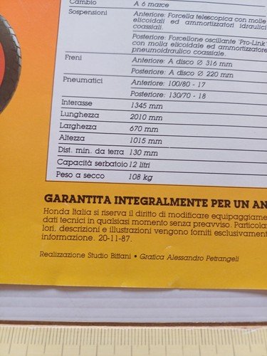 Honda NSR 125 F 1987-88 depliant italiano originale
