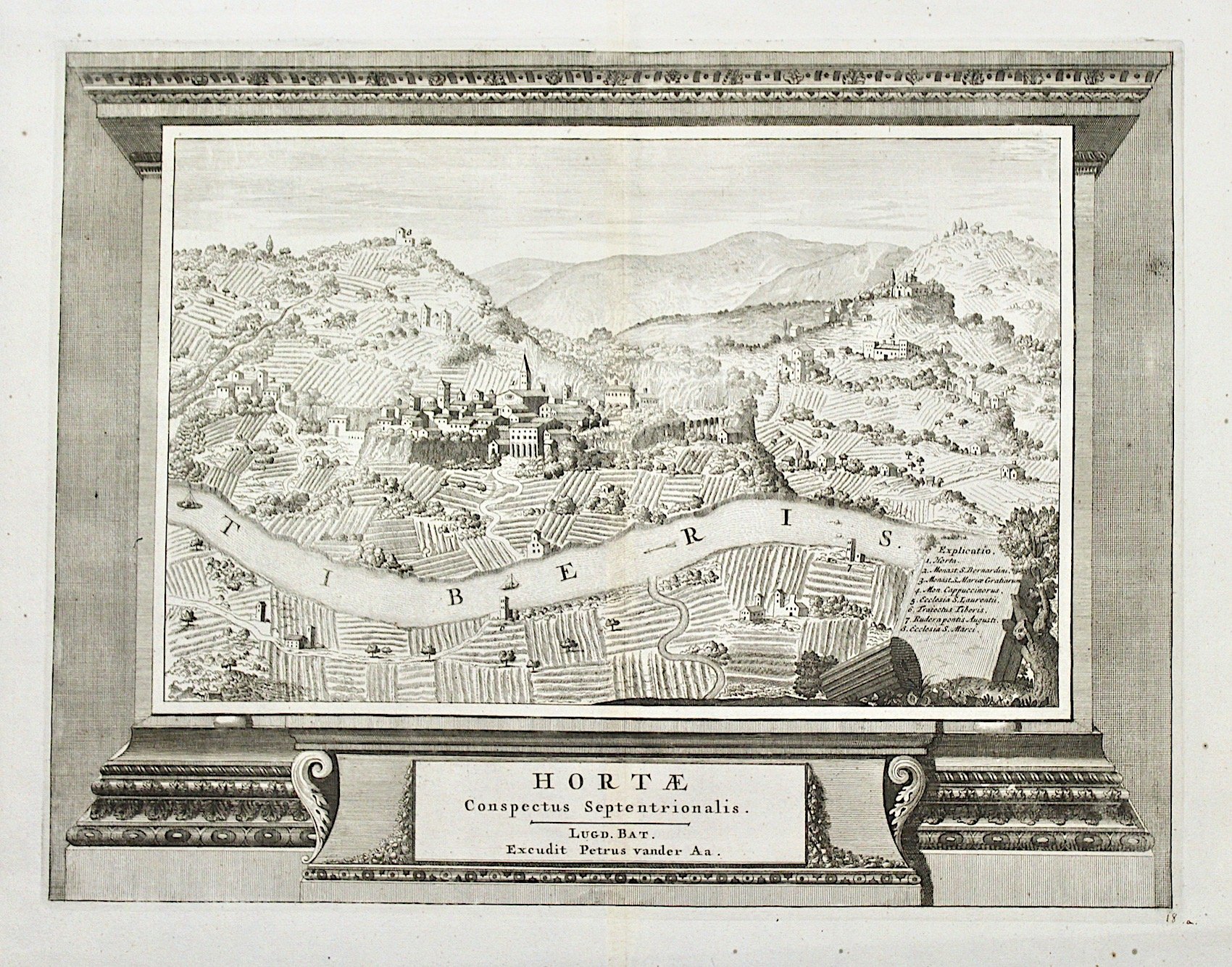 Incisione in rame, 320x415. Bella veduta prospettica incorniciata entro fregio architettonico con titolo in basso a sin. Ottimo esemplare. Tratta da: GRAEVIUS JOANNES GEORGIUS. Thesaurus antiquitatum et historiarum Italiae.