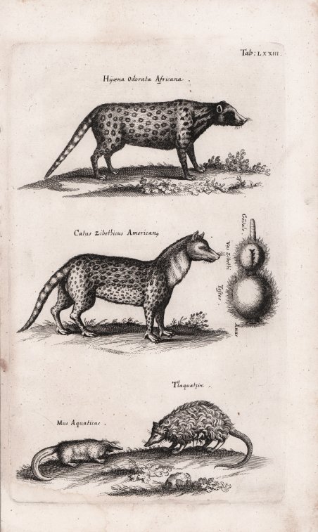 Hyoena Odorata Africana / Catus Zibethicus Americano / Mus Aquaticus. Tlaquatzin