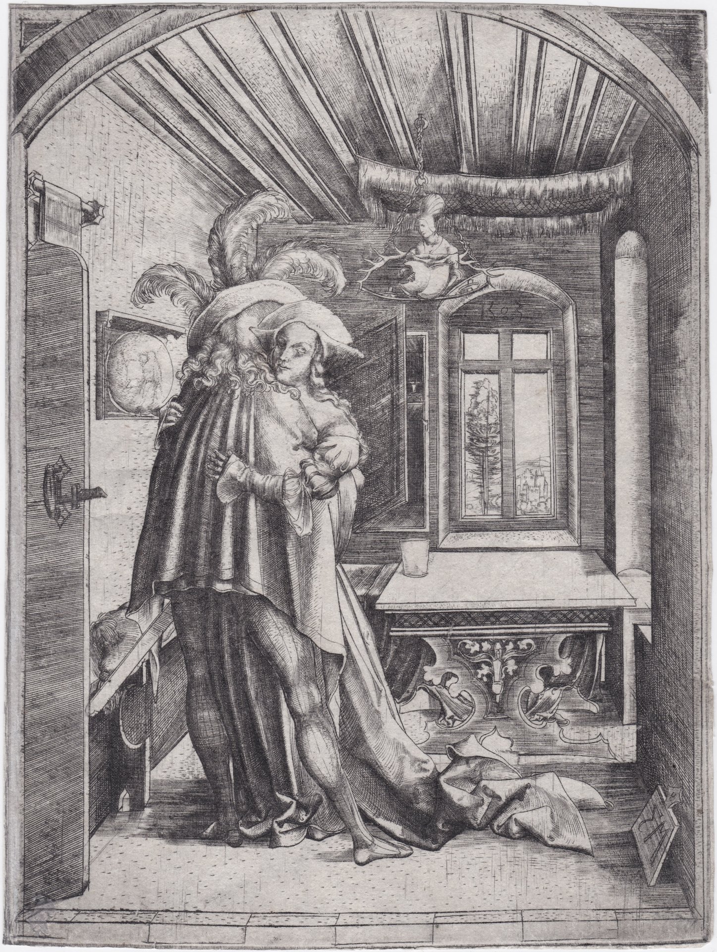 Secondo Lehrs la più raffinata e matura delle incisioni di Zasinger. Certamente insolita per la descrizione dell'interno tardo gotico e per l'atmosfera di intimità composta. In basso a destra su una tavoletta appoggiata al muro il monogramma MZ, sopra la finestra la data 1503. L'incisione ebbe una certa popolarità e, secondo Lehrs, la lastra è stata tirata con buoni risultati per molto tempo. Lehrs conosce circa 60 esemplari.