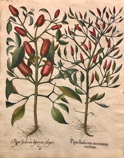 Incisione originale su rame (cm. 40x48 più margini bianchi) tratta dal celebre erbario ‘Hortus Eystettensis’. Splendida coloritura antica all’acquarello. Esemplare in eccellente stato di conservazione. Prima edizione pubblicata in soli 300 esemplari. Besler fu un rinomato farmacista e botanico di Norimberga, curatore del giardino botanico (unico importante in Europa al di fuori dell’Italia) di Johann Konrad von Gemmingen, principe vescovo di Eichstätt in Baviera. Fu lo stesso vescovo a commissionare questa monumentale opera. L’ ‘Hortus’, frutto di 16 anni di lavoro, contiene ben 367 tavole - che mostrano fioritura e fruttificazione nelle diverse stagioni - incise da alcuni tra i più valenti artisti tedeschi dell’epoca dai disegni originali dello stesso Basilius Besler.Cfr. ‘The book of plants’, Taschen 2007.
