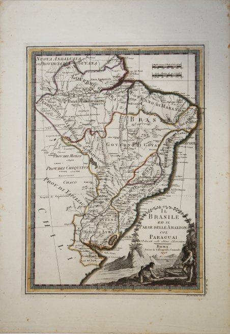 Carta tratta dal "Nuovo Atlante Geografico Universale delineato sulle ultime osservazioni", edito a Roma dal 1792 fino al 1801, opera che la Calcografia Camerale commissionò al Cassini al fine di sostituire l’ormai obsoleto "Mercurio Geografico". Giovanni Maria Cassini, Chierico Regolare Somasco fu geografo e cartografo, ma anche intagliatore di architetture e prospettive - uno dei migliori discepoli di Giovanni Battista Piranesi - Cassini fu uno degli ultimi sferografi italiani del Settecento ed i suoi globi ebbero una notevole diffusione, come pure questo "Nuovo Atlante Geografico". Incisione in rame, finemente colorata nei contorni, in ottimo stato di conservazione. An uncommon map, published in the 'Nuovo Atlante Geografico Universale', with a decorative title cartouche, by Giovanni Maria Cassini, a Somasco monk. He was geographer and cartographer but he was also good at engraving architectural items and perspectives – he was one of the best disciples Giovanni Battista Piranesi had.Moreover, Cassini was one of the last artists to engrave spheres in the XVIII century and his globes were quite famous and widespread, and realized the most important Italian Atlas of the XVIII century; his maps always bear a cartouche, extremely rich in colours and details. Copperplate with fine later hand colour, in very good condition. Cfr.