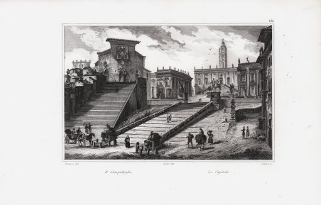 Veduta tratta dal celebre ' L'Italie, la Sicile, les Iles Éoliennes, l'Ile d'Elbe, la Sardaigne, Malte, l'Ile de Calypso etc. D'après les inspirations, les recherches et les travaux de M. M. le Vicomte de Chateaubriand, De Lamartine, Raoul-Rochette, le Comte de Forbin, Piranesi, Mazzara, et de Napoléon, Denon, Saint-Non, Lord Byron, Goethe, Visconti, Cicognara, Lanzi, de Bonstetten, Swinburne, etc. Sites, Monumens, Scènes et Costumes, d'après M.me Haudebourt-Lescot, MM. Horace-Vernet, Granet, Isabey, Ciceri, Mazzara, le Major Light, le Cap. Batty, Cooke, Gell et Gandy, Pinelli, Ferrari, Zucoli, et beaucoup d'autres artistes italiens. Recueillis et publiés par Audot Père, Membre de la Société de Géographie, ' edito a Parigi tra il 1834 ed il 1837 e ristampato a Torino [Giuseppe Pomba e Ca, 1834-1838]. L'opera, in cinque volumi, raccoglie scritti di autori vari, curati da Audot, ed è riccamente illustrata da 324 incisioni su acciaio fuori testo, molte delle quali con accostamento multiplo, per un totale di 473 tavole. Fu notoriamente mastodontico il lavoro cui si sottopose Louis Eustache Audot (1783-1870). View taken from the famous ' L'Italie, la Sicile, les Iles Éoliennes, l'Ile d'Elbe, la Sardaigne, Malte, l'Ile de Calypso etc. D'après les inspirations, les recherches et les travaux de M. M. le Vicomte de Chateaubriand, De Lamartine, Raoul-Rochette, le Comte de Forbin, Piranesi, Mazzara, et de Napoléon, Denon, Saint-Non, Lord Byron, Goethe, Visconti, Cicognara, Lanzi, de Bonstetten, Swinburne, etc. Sites, Monumens, Scènes et Costumes, d'après M.me Haudebourt-Lescot, MM. Horace-Vernet, Granet, Isabey, Ciceri, Mazzara, le Major Light, le Capt. Batty, Cooke, Gell et Gandy, Pinelli, Ferrari, Zucoli, et beaucoup d'autres artistes italiens. Recueillis et publiés par Audot Père, Membre de la Société de Géographie, ' published in Paris between 1834 and 1837 and reprinted in Turin [Giuseppe Pomba e Ca, 1834-1838]. The work, in five volumes, collects the writings of various authors, edited by Audot, and is richly illustrated with 324 engravings on steel outside the text, many of them with multiple combinations, for a total of 473 tables. Louis Eustache Audot (1783-1870) was a notoriously mammoth task. Cfr.