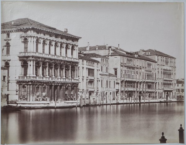 Fotografia originale da gelatina ai sali d'argento su carta baritata di mm 345 x 270. A china, in bianco, come spesso nelle fotografie di Naya, la dicitura : "70 Venezia Canal Grande". Carlo Naya (1816-1882) fu uno dei più importanti fotografi italiani del diciannovesimo secolo; piemontese di nascita, di famiglia agiata, si trasferisce a Venezia nel 1857, associandosi con il già celebre fotografo Carlo Ponti, da cui si separerà nel 1868, aprendo due laboratori autonomi.