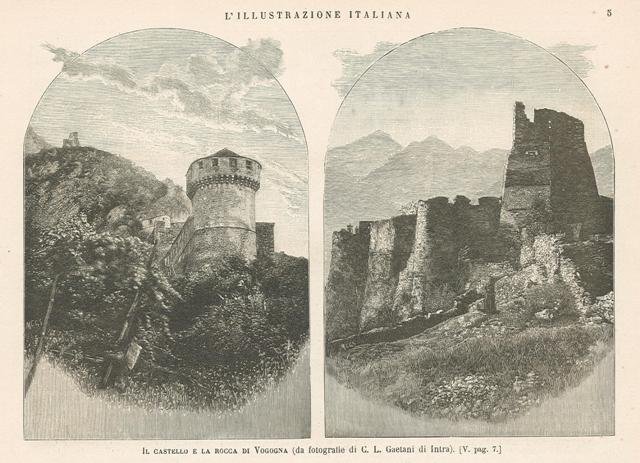 Veduta della Rocca e del Castello di Vogogna in Valdossola incise da fotografie di C. L. Gaetani di Intra