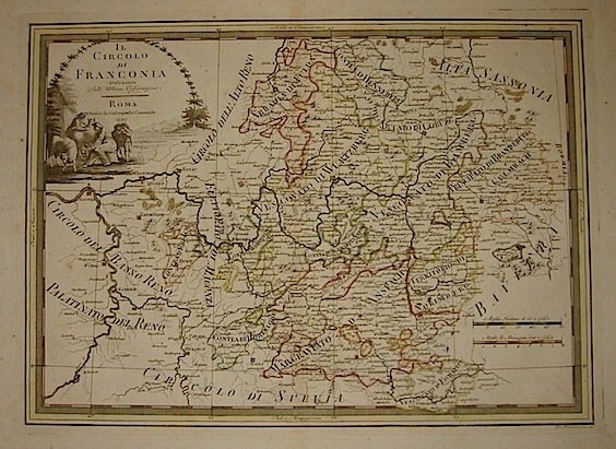 Incisione originale su rame (cm. 49x36 più ampi margini). Coloritura coeva all’acquerello. Ottimo esemplare.