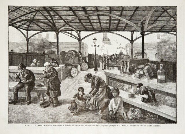 Il colera a Palermo / Cucine economiche e deposito di disinfettanti nel mercato degli Aragonesi