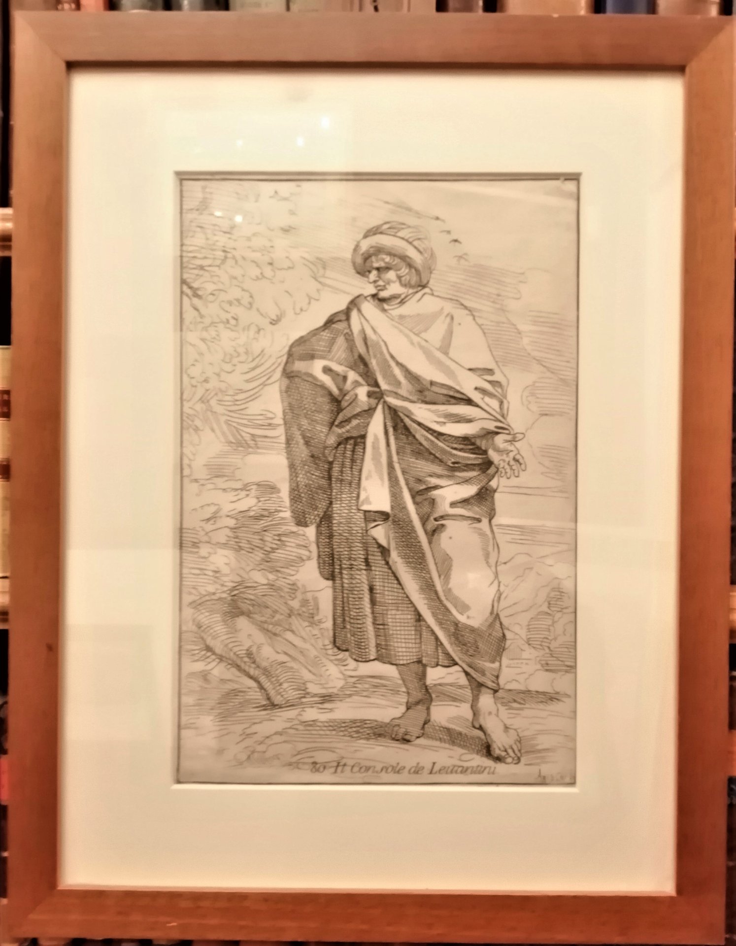 Incisione all'acquaforte di mm 320 x 220 su carta vergellata. La stampa è l'ultima della più che celebre raccolta variamente titolata dai vari editori, ma nota come "Le Arti per Via della città di Bologna". Tratte da disegni di Annibale Carracci vennero incise e pubblicate per la prima volta nel 1646. In realtà le ultime incisioni non rappresentano artigiani, ma altre figure che, disegnate dal Carracci, vennero ritenute idonee per essere inserite nell'album.
