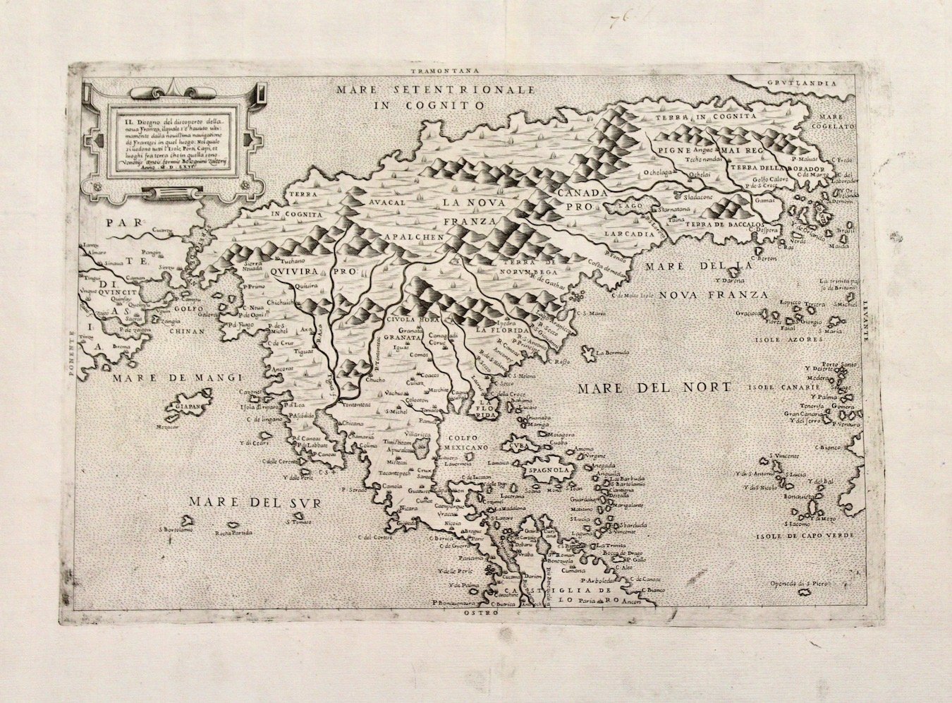 Il Disegno del discoperto della nova Franza, il quale s'è havuto ultimamente dalla novissima navigatione dè Franzesi in quel luogo.: Nel quale si vedono tutti l'Isole, Porti, Capi, et luoghi fra terra che in quella sono