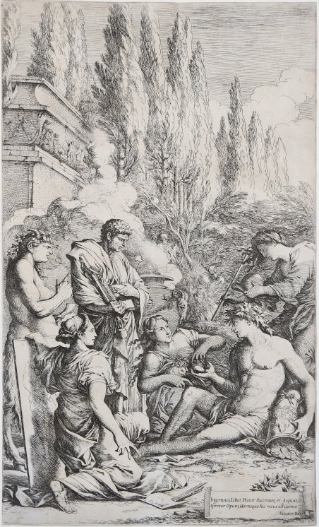 Il genio di Salvator Rosa; a destra l'artista seduto a terra, con un braccio appoggiato su una cornucopia rovesciata, circondato da figure allegoriche tra cui Libertà, Pittura e Vizio. Acquaforte con puntasecca, circa 1662, firmata in basso a destra Salvator Rosa. Esemplare nel terzo stato finale, con il tratteggio sulle nuvole di fumo. Magnifica prova, ricca di toni, impressa su carta vergata coeva con filigrana non leggibile, rifilata al rame, in ottimo stato di conservazione. “Riprendendo liberamente la composizione del Genio di Giovanni Benedetto Castiglione, di impianto più semplice, dominata dalla sola figura centrale, Salvator Rosa ha realizzato in questa incisione il suo manifesto del genio di un artista, codificandone nell'iscrizione le qualità morali legate all'ideale della filosofia stoica di uomo libero e giusto, noncurante della ricchezza e della morte. Wallace ha studiato in modo approfondito l'iconografia di questa stampa e le sue fonti, tra le quali le più importanti sono l'Iconologia del Ripa, e la Hierogliphyca di Pierio Valeriano. Il Genio, nudo e seduto come quello del Castiglione coronato di edera, è raffigurato mentre offre il suo cuore alla Sincerità, una donna con una colomba in mano; dietro di lui la Libertà sta per mettergli un berretto frigio. Il Genio appare stoicamente indifferente tanto alle ricchezze con il braccio sinistro regge una cornucopia rovesciata, che alla morte, simboleggiata dal sepolcro, dai cipressi e dal fumo che esce dallo stamnos. Sulla sinistra, in ginocchio, vi è la Pittura, che sostiene un quadro e ha la tavolozza ai suoi piedi; al centro il personaggio togato con un libro e la bilancia in mano è la raffigurazione dello Stoicismo, al cui credo il Rosa cercò di attenersi per tutta la vita, ed infine il satiro sulla sinistra è la Poesia satirica raffigurata con le sue componenti dionisiache. L'incisione, realizzata nel 1662, risente di una forte ispirazione classica, particolarmente evidente nella figura del Genio, atteggiato come un dio fluviale dell'antichità, e della Pittura, che copia un astante nella Trasfigurazione di Raffaello. Si conoscono vari disegni preparatori per questa incisione; il modellino definitivo, con l'immagine in controparte, è conservato nell'Istituto Nazionale per la Grafica di Roma (inv. FC. 124795)” (cfr. S. Massari, Tra Mito e Allegoria, p. 456). Bibliografia Bartsch, Le Peintre graveur (XX.277.24); Wallace, The Etchings of Salvator Rosa (113.III); S. Massari, Tra Mito e Allegoria, pp. 456-57, n. 175; Gori Gandellini, 1815, XIII, p. 319, n. XV; Le Blanc, 1858, III, p, 360, n. 25; Rotili, 1974, pp. 222-23, n. e fig. 103; Mahoney, 1977, I, pp. 567-71, n. 65.14-18, n. 38.5; Costamagna, 1981, n. 151. The genius of Salvator Rosa; right, the artist seated on the ground, one arm resting on an inverted cornucopia, surrounded by allegorical figures including Liberty, Painting, and Vice. Etching with drypoint, ca. 1662, signed lower right Salvator Rosa. Example in the final third state, with hatching on the clouds of smoke. Magnificent proof, rich in tone, printed on contemporary laid paper with unreadable watermark, trimmed to copperplate, in excellent condition. Liberally based on the composition of Giovanni Benedetto Castiglione's Genius, of simpler layout, dominated by the central figure alone, Salvator Rosa has realized in this etching his manifesto of an artist's genius, codifying in the inscription the moral qualities linked to the ideal of Stoic philosophy of a free and just man, heedless of wealth and death. Wallace has extensively studied the iconography of this print and its sources, the most important of which are Ripa's Iconologia, and Pierius Valerian's Hierogliphyca. The Genius, naked and seated like Castiglione's crowned with ivy, is depicted offering his heart to Sincerity, a woman with a dove in her hand; behind him Liberty is about to put a Phrygian cap on him. The Genius appears stoically indifferent both to riches with his left arm holding an inverted cornucopia, and to death, symbolized by the tomb, the cypress trees, and the smoke rising from the stamnos. On the left, kneeling, is Painting, which holds a painting and has a palette at its feet; in the center, the toggled figure with a book and scales in his hand is a depiction of Stoicism, to whose creed Rosa tried to adhere throughout his life, and finally, the satyr on the left is Satirical Poetry depicted with its Dionysian components. The work, made in 1662, is influenced by a strong classical inspiration, particularly evident in the figure of the Genius, posed as a river god of antiquity, and Painting, copying a bystander in Raphael's Transfiguration. Several preparatory drawings for this engraving are known; the final model, with the image in counterpart, is preserved in the Istituto Nazionale per la Grafica, Rome (inv. FC. 124795) Bibliografia Bartsch, Le Peintre graveur (XX.277.24); Wallace, The Etchings of Salvator Rosa (113.III); S. Massari, Tra Mito e Allegoria, pp. 456-57, n. 175; Gori Gandellini, 1815, XIII, p. 319, n. XV; Le Blanc, 1858, III, p, 360, n. 25; Rotili, 1974, pp. 222-23, n. e fig. 103; Mahoney, 1977, I, pp. 567-71, n. 65.14-18, n. 38.5; Costamagna, 1981, n. 151. Cfr.