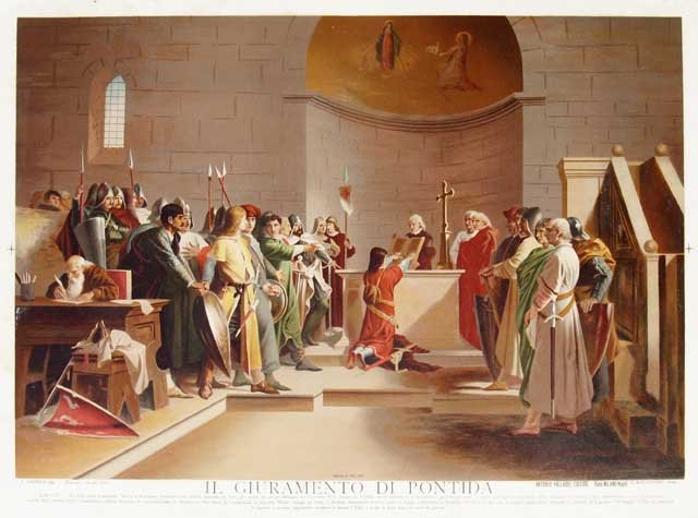 Rappresentazione della famosa battaglia di Legnano il 29 maggio 1176. Piccolo foro di tarlo al margine inferiore