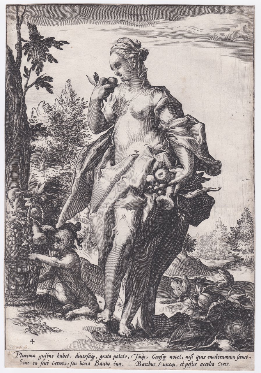 Bibliografia: Holl. 9; N H Hendrick Goltzius part IV, vista 689 I, gusto 692 I); B 3 1-5; H IV 6-10; Tierie 1932 p 32; Filedt Kok 1993, n A.6; Dory n C.b; Veldman fig. 204.