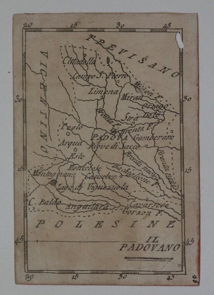 RARITA’ CARTOGRAFICA - Secondo Stato, con il nome dell'editore, in precedenza sotto al titolo, abraso.Sconosciuta piccola carta geografica appartenente a un non documentato atlante in miniatura dal titolo “Atlante tascabile per le dame”, suddiviso in tre tomi, stampati “IN VENETIA Presso G. Zatta”, senza data ma circa 1795.Si tratta di carte da visita – con un apposito spazio bianco dove apporre il proprio nome – dove compare l’imprint o di Pietro Zancon (accompagnato dalla data 1794) o di Giacomo Zatta (con data 1794 o 1795), che, come si legge sul frontespizio, risulta l’editore dell’opera. Possiamo ipotizzare che la serie, iniziata da Zancon fu poi terminata dallo Zatta. Sulla carta dell’Italia – presumibilmente la prima tavola dell’opera – compare stampato il nome di Chiara Minelli Rota, nobildonna veneziana che sposò Antonio Rota nel 1794; tutte le restanti 65 carte recano lo spazio bianco privo di nome.In precedenza, le carte erano note solo attraverso una serie, priva di imprint editoriale, venduta 21 anni fa (1999) dall’Antiquariaat Haas di Bedburg Hau; parlando con Stephan Haas, la serie, priva di titolo e dati editoriali si componeva di 70 mappe. Le carte furono vendute separatamente sotto il nome di G. Bonatti, firma dell’incisore che si trova nella carta della Francia. In seguito, le tavole furono attribuite a Pietro Zaricen da Geoffrey King (cfr. Miniature Antique Maps, p. 181). Il nome dello Zaricen viene dedotto dalla carta della contea del Roussillon, che reca l’iscrizione “Venezia 1794 App.o P. Zancon”, letto erroneamente come Zaricen. Lajos Szantai include la carta dell’Ungheria nella sua cartobibliografia, traducendo il nome dell’autore in Zancen (cfr. Atlas Hungaricus 1528-1850). Sempre King, che non menziona nessuna carta firmata da Zatta, sostiene che “About the turn of the century a signed card of the first edition, with a map of the province of Roussillon in the south of France, was seen at an Ephemera Society Fair in London”. Questo esemplare sembrerebbe oggi quello conservato alla Yale University Library [1978 351], che lo descrive composto da 70 carte geografiche. Non sappiamo se sia il numero totale delle mappe, e l’assenza di un indice o dell’elenco non consente di stabilire l’esatto numero delle carte che lo compongono. http://hdl.handle.net/10079/bibid/3611852Confrontando le carte erroneamente attribuite allo Zaricen ci si accorge che la lastra è abrasa in corrispondenza della firma di Zancon o Zatta. Molto scarse sono le notizie sulle carte che possiamo ora definire “ex Zaricen”.Jason Hubbard nella sua bibliografia recente sulle carte del Giappone raffigura la carta priva dell’imprint “App.o G. Zatta” attribuendola - sulla base delle informazioni bibliografiche finora note – a Giuseppe Bonatti e Pietro Zaricen: “This is one of the 70-odd geographical cards, printed on one side only, acquired by the Haas brothers in 1999. The cards cover countries around the world and include detailed map of Italian provinces. The card with the map of France carries the inscription: G. Bonatti fece; and it is presumed that Bonatti engraved all of them although this is questioned by King” (cfr. J. Hubbard, Japoniae Insulae, n. 124). Il nostro esemplare della carta della Francia, che reca l’imprint “Venezia 1794, App.o P. Zancon” reca in basso a destra la firma di Bonatti sopra menzionata. Dunque, l’unica differenza tra questa serie di sconosciute carte sembra essere la presenza degli imprint editoriali di Zancon e Zatta, accompagnati dalla data 1794 o 1795. Giuseppe Bonatti è menzionato da V. Valerio nella qualità di incisore cresciuto alla scuola Remondini di Bassano, autore di alcune carte per l’atlante di Pazzini Carli (Siena, 1788-1800) e per l’Atlante Geografico di Carlo Antonio Barbiellini (Milano, 1807). Dal 1809 in poi lavorò come incisore per il Deposito della Guerra di Milano (cfr. V. Valerio, Cartografi Veneti, p. . RARITA’ CARTOGRAFICA - Secondo Stato, con il nome dell'editore, in precedenza sotto al titolo, abraso.Sconosciuta piccola carta geografica appartenente a un non documentato atlante in miniatura dal titolo “Atlante tascabile per le dame”, suddiviso in tre tomi, stampati “IN VENETIA Presso G. Zatta”, senza data ma circa 1795.Si tratta di carte da visita – con un apposito spazio bianco dove apporre il proprio nome – dove compare l’imprint o di Pietro Zancon (accompagnato dalla data 1794) o di Giacomo Zatta (con data 1794 o 1795), che, come si legge sul frontespizio, risulta l’editore dell’opera. Possiamo ipotizzare che la serie, iniziata da Zancon fu poi terminata dallo Zatta. Sulla carta dell’Italia – presumibilmente la prima tavola dell’opera – compare stampato il nome di Chiara Minelli Rota, nobildonna veneziana che sposò Antonio Rota nel 1794; tutte le restanti 65 carte recano lo spazio bianco privo di nome.In precedenza, le carte erano note solo attraverso una serie, priva di imprint editoriale, venduta 21 anni fa (1999) dall’Antiquariaat Haas di Bedburg Hau; parlando con Stephan Haas, la serie, priva di titolo e dati editoriali si componeva di 70 mappe. Le carte furono vendute separatamente sotto il nome di G. Bonatti, firma dell’incisore che si trova nella carta della Francia. In seguito, le tavole furono attribuite a Pietro Zaricen da Geoffrey King (cfr. Miniature Antique Maps, p. 181). Il nome dello Zaricen viene dedotto dalla carta della contea del Roussillon, che reca l’iscrizione “Venezia 1794 App.o P. Zancon”, letto erroneamente come Zaricen. Lajos Szantai include la carta dell’Ungheria nella sua cartobibliografia, traducendo il nome dell’autore in Zancen (cfr. Atlas Hungaricus 1528-1850). Sempre King, che non menziona nessuna carta firmata da Zatta, sostiene che “About the turn of the century a signed card of the first edition, with a map of the province of Roussillon in the south of France, was seen at an Ephemer