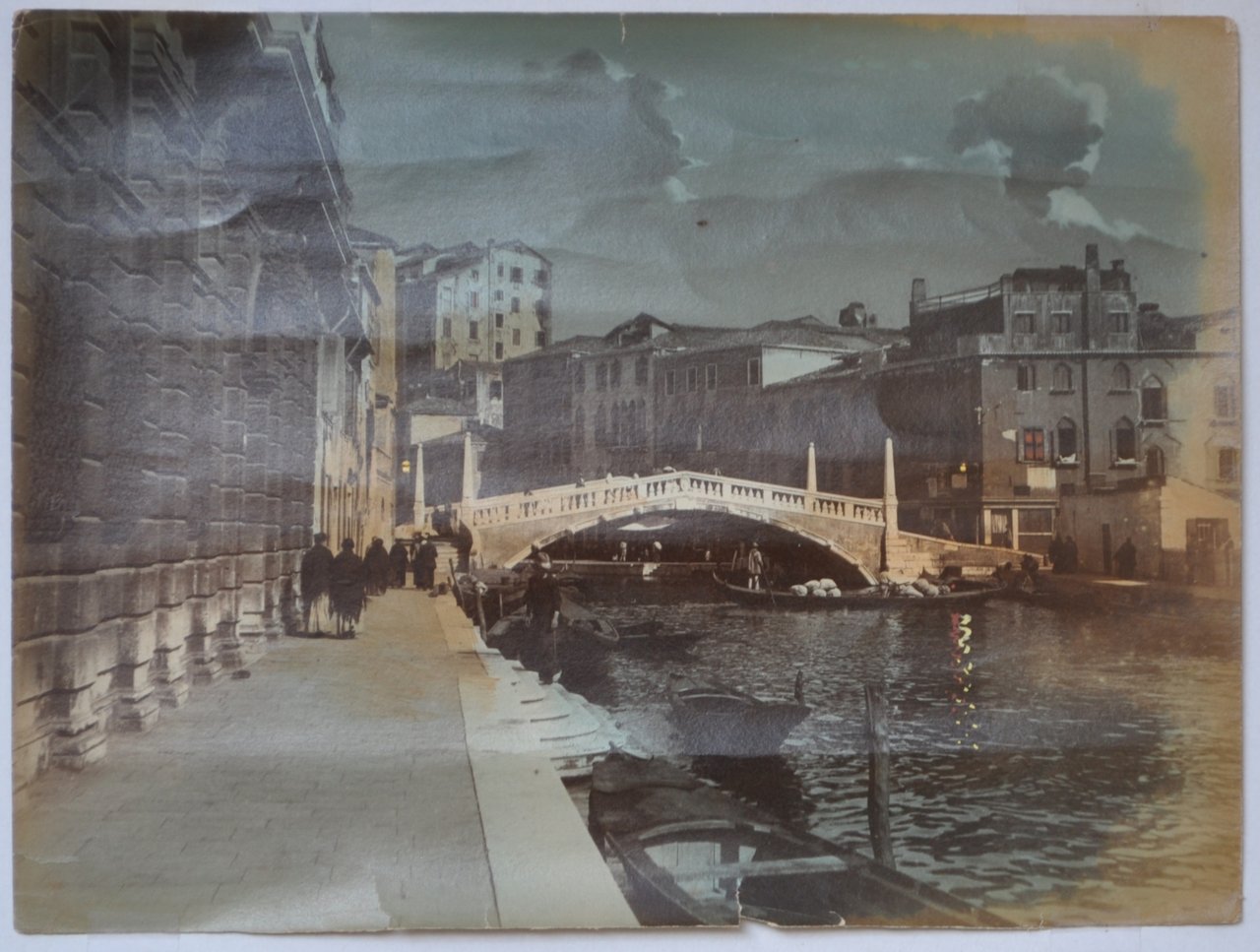 Fotografia originale all'albumina con colorazione a mano ad effetto notturno di mm 255 x 190. Tomaso Filippi (1852 - 1948) può essere considerato il successore del grande fotografo Naya, di cui Filippi diresse lo stabilimento per diversi anni, prima di aprire uno studio autonomo dal 1894.
