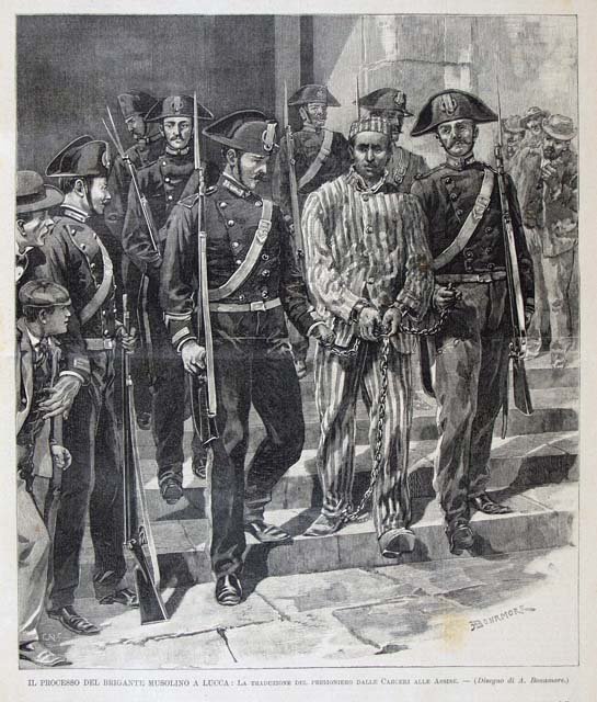 Il processo del brigante Musolino a Lucca: la traduzione del prigioniero dalle carceri alle assise