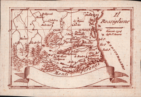 RARITA’ CARTOGRAFICA Sconosciuta piccola carta geografica con imprint di Pietro Zancon e data 1794, appartenente a un non documentato atlante in miniatura dal titolo “Atlante tascabile per le dame”, suddiviso in tre tomi, stampati “IN VENETIA Presso G. Zatta”, senza data ma circa 1795. Si tratta di carte da visita – con un apposito spazio bianco dove apporre il proprio nome – dove compare l’imprint o di Pietro Zancon (accompagnato dalla data 1794) o di Giacomo Zatta (con data 1794 o 1795), che, come si legge sul frontespizio, risulta l’editore dell’opera. Possiamo ipotizzare che la serie, iniziata da Zancon fu poi terminata dallo Zatta. Sulla carta dell’Italia – presumibilmente la prima tavola dell’opera – compare stampato il nome di Chiara Minelli Rota, nobildonna veneziana che sposò Antonio Rota nel 1794; tutte le restanti 65 carte recano lo spazio bianco privo di nome. In precedenza, le carte erano note solo attraverso una serie, priva di imprint editoriale, venduta 21 anni fa (1999) dall’Antiquariaat Haas di Bedburg Hau; parlando con Stephan Haas, la serie, priva di titolo e dati editoriali si componeva di 70 mappe. Le carte furono vendute separatamente sotto il nome di G. Bonatti, firma dell’incisore che si trova nella carta della Francia. In seguito, le tavole furono attribuite a Pietro Zaricen da Geoffrey King (cfr. Miniature Antique Maps, p. 181). Il nome dello Zaricen viene dedotto dalla carta della contea del Roussillon, che reca l’iscrizione “Venezia 1794 App.o P. Zancon”, letto erroneamente come Zaricen. Lajos Szantai include la carta dell’Ungheria nella sua cartobibliografia, traducendo il nome dell’autore in Zancen (cfr. Atlas Hungaricus 1528-1850). Sempre King, che non menziona nessuna carta firmata da Zatta, sostiene che “About the turn of the century a signed card of the first edition, with a map of the province of Roussillon in the south of France, was seen at an Ephemera Society Fair in London”. Questo esemplare sembrerebbe oggi quello conservato alla Yale University Library [1978 351], che lo descrive composto da 70 carte geografiche. Non sappiamo se sia il numero totale delle mappe, e l’assenza di un indice o dell’elenco non consente di stabilire l’esatto numero delle carte che lo compongono. http://hdl.handle.net/10079/bibid/3611852Confrontando le carte erroneamente attribuite allo Zaricen ci si accorge che la lastra è abrasa in corrispondenza della firma di Zancon o Zatta. Molto scarse sono le notizie sulle carte che possiamo ora definire “ex Zaricen”. Jason Hubbard nella sua bibliografia recente sulle carte del Giappone raffigura la carta priva dell’imprint “App.o G. Zatta” attribuendola - sulla base delle informazioni bibliografiche finora note – a Giuseppe Bonatti e Pietro Zaricen: “This is one of the 70-odd geographical cards, printed on one side only, acquired by the Haas brothers in 1999. The cards cover countries around the world and include detailed map of Italian provinces. The card with the map of France carries the inscription: G. Bonatti fece; and it is presumed that Bonatti engraved all of them although this is questioned by King” (cfr. J. Hubbard, Japoniae Insulae, n. 124). Il nostro esemplare della carta della Francia, che reca l’imprint “Venezia 1794, App.o P. Zancon” reca in basso a destra la firma di Bonatti sopra menzionata. Dunque, l’unica differenza tra questa serie di sconosciute carte sembra essere la presenza degli imprint editoriali di Zancon e Zatta, accompagnati dalla data 1794 o 1795. Giuseppe Bonatti è menzionato da V. Valerio nella qualità di incisore cresciuto alla scuola Remondini di Bassano, autore di alcune carte per l’atlante di Pazzini Carli (Siena, 1788-1800) e per l’Atlante Geografico di Carlo Antonio Barbiellini (Milano, 1807). Dal 1809 in poi lavorò come incisore per il Deposito della Guerra di Milano (cfr. V. Valerio, Cartografi Veneti, p. 153). Pietro Zancon era, assieme . A GREAT RARITY Unknown small map with imprint by Pietro Zancon and date 1794, belonging to an undocumented miniature atlas entitled “Atlante tascabile per le dame” (Pocket Atlas for ladies), divided into three volumes, printed "IN VENETIA Presso G. Zatta", undated but about 1795. A rare set of visiting cards published in Italy features pretty little maps of all parts of the world - with a special white space where to put your name - where the imprint appears or of Pietro Zancon (accompanied by the date 1794) or Giacomo Zatta (with the date 1794 or 1795), who, as can be read on the title page, is the publisher of the whole Atlas. We can speculate that the series, started by Zancon was later terminated by Zatta. On the map of Italy is printed - presumably the first map of the work - the name of Chiara Minelli Rota, Venetian noblewoman who married Antonio Rota in 1794; all remaining 65 maps bear the blank space without names. Previously, the maps were known only through a series, without editorial imprint, sold 21 years ago (1999) by the Antiquariaat Haas of Bedburg Hau; speaking with Stephan Haas, the series, without title and printing details, consisted of 70 maps. The maps were sold separately under the name of G. Bonatti, the engraver's signature found on the map of France. Later, the plates were attributed to Pietro Zaricen by Geoffrey King (see Miniature Antique Maps, p. 181). The name of Zaricen is derived from the Roussillon county map, which bears the inscription "Venice 1794 App.o P. Zancon", incorrectly read as Zaricen. Lajos Szantai includes the map of Hungary in his cartobibliography, translating the author's name into Zancen (see Atlas Hungaricus 1528-1850). Always King, who does not mention any map signed by Zatta, said: "About the turn of the century a signed card of the first edition, with a map of the province of Roussillon in the south of France, was seen at an Ephemera Society Fair in London ". This copy would seem to be the one preserved in the Yale 